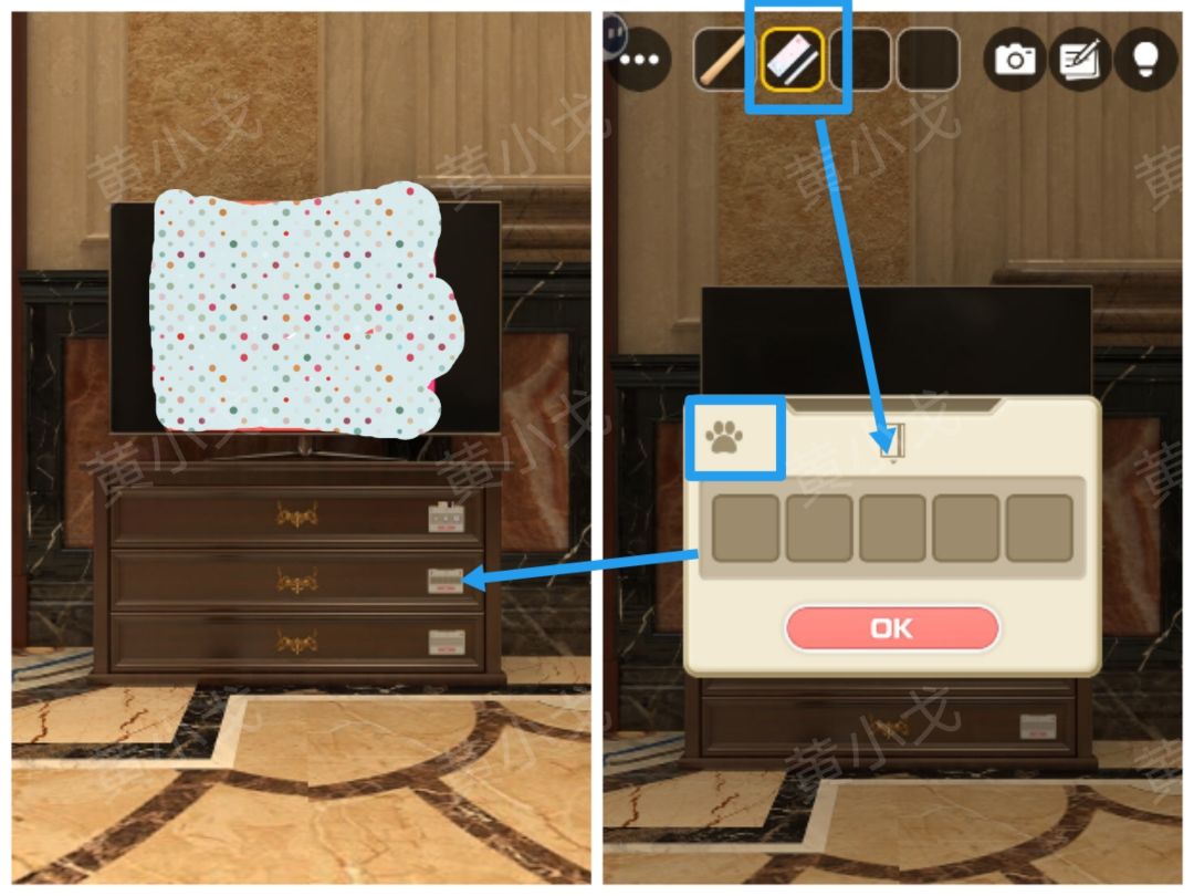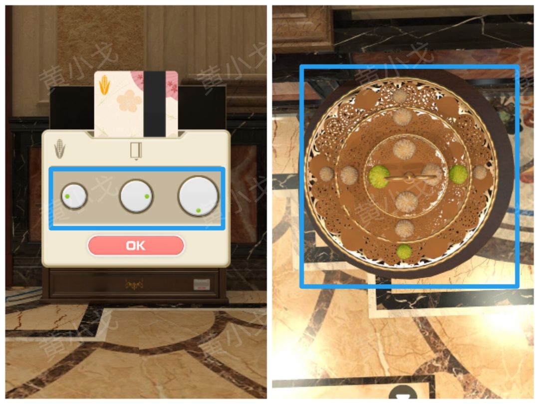 20.点击柜子抽屉上的密码锁,根据[小猪]场景小猪抬手顺序线索,按顺序按下按钮