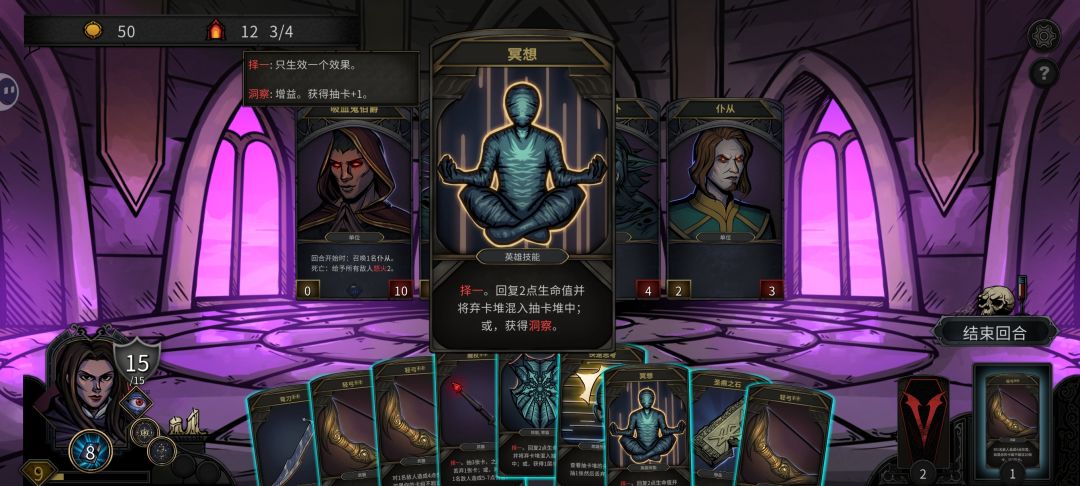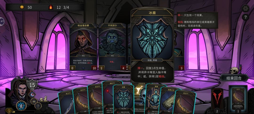 战斗后无怪但仍能使用部分卡牌(不指向怪物类卡牌都可),在战斗后用魔杖+冰盾实现休养生息。