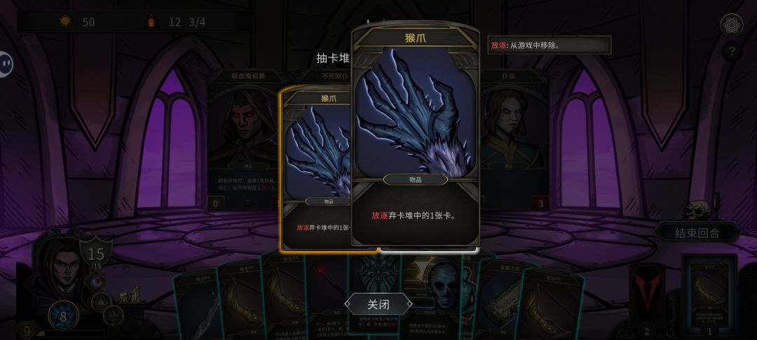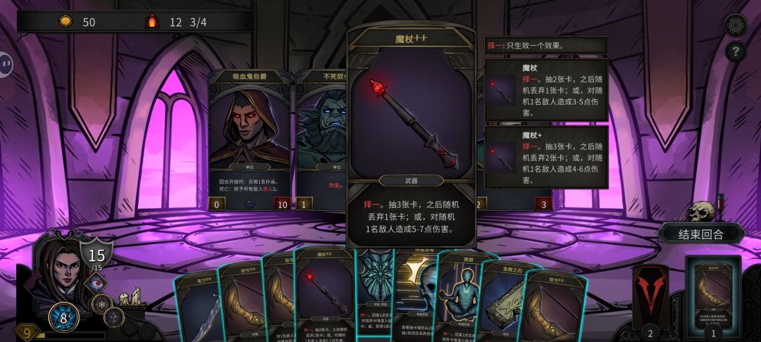 同时为了保证下次战斗首回合就抽满至手牌上限(手牌上限9张),所以战斗中多用弯刀。