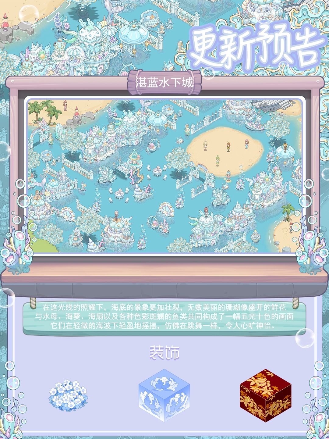 💙偷偷告诉你——每扇贝壳门后都藏着不同的童话剧本,旋转楼梯的扶手会哼唱古老的海语歌谣,连脚下的细沙都在悄悄拼凑属于你的海底故事~。原来最动人的童话从不是寓言,而是有人把所有温柔幻想,都变成了能触摸到的星辰大海。~使用礼包码【renyugz】,在游戏设置界面中输入礼包码即可领取!