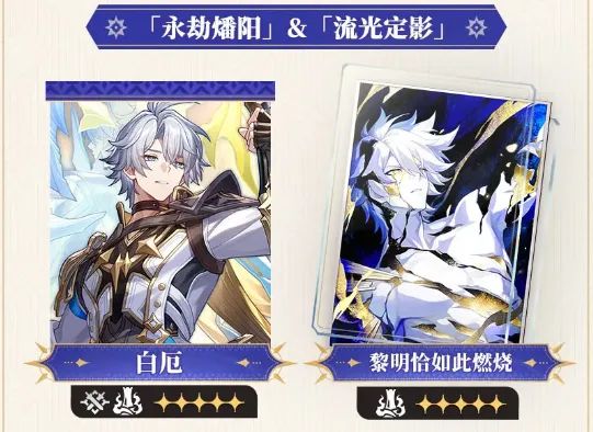 白厄(Phainon):作为版本主推角色,其光锥「黎明恰如此燃烧」以火焰意象暗示技能特性,或与灼烧、群体伤害机制相关。