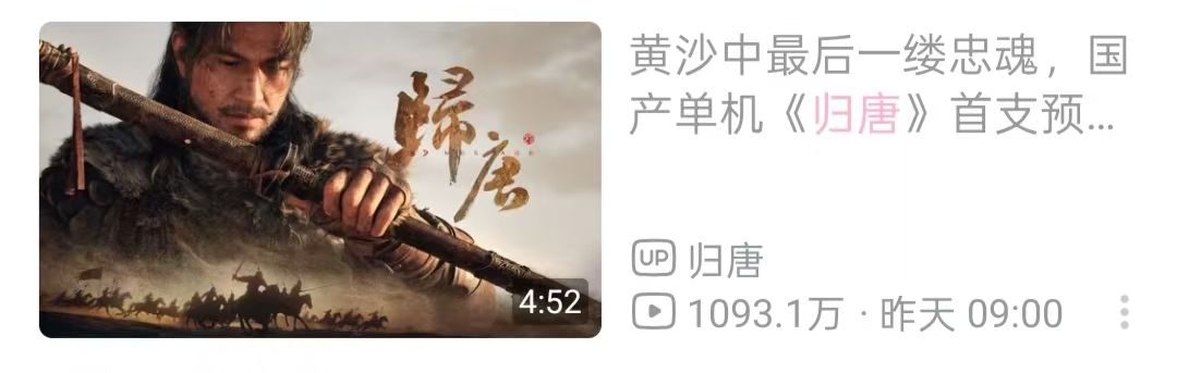 在《黑神话:悟空》以90亿销售额刷新国产游戏天花板一年后,网易在没有任何预热的情况下抛出了历史题材单机新作《归唐》的首支预告pv,短短一天,播放量便突破千万大关,登顶B站全站排行榜榜首。