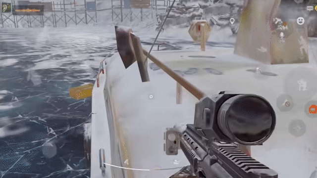 首先来到冰湖中央,踩着小船螺旋桨翻进去,在里面找找角度,是可以躺下来的,有效规避热成像!