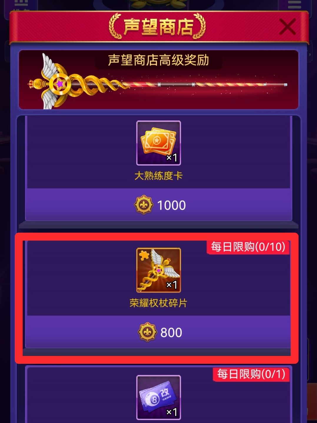 攒够声望的宝子有福啦!俱乐部商城里,荣耀权杖10个碎片整整齐齐排排坐,只要你声望到位,它们就统统归你,直接实现“碎片自由”!