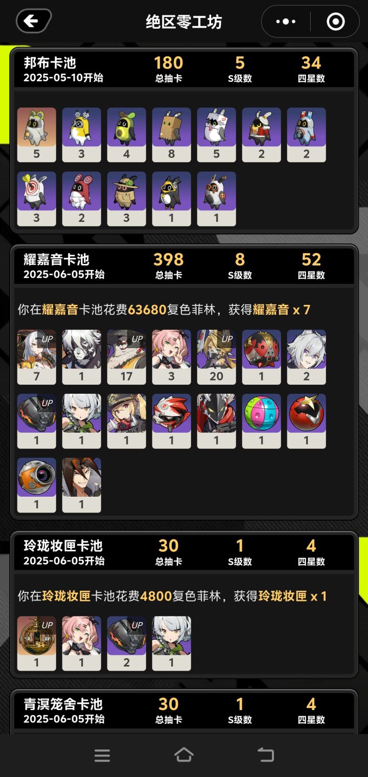从1.5我抽耀嘉音失败以后,我就没什么目标了中途没什么事儿就瞎垫了垫池子直到我看见了薇薇安我觉得她真的很不错,我都想给她抽0+1如果我没有看到第二季的先导PV,如果我没看见仪玄所以我计划有变抽仪玄,至于我为什么要抽满命仪玄这真的是完完全全的一场意外,我原神水神在第二次复刻是满命累计花了我近800抽刚出那会儿,我总共攒了440抽加换的520抽角色吃大保底垫了60抽,武器池也垫了50抽武器池运气非常好,一发10连直接就出了剩下的510抽全抽水神,四只就给我4只三命那把我气的呀!至于仪玄开服那会儿总共就256抽但我万万没想到加上周年庆,加上我换的总共300抽我万万没想到我4+1中间来个双金,不过其中一个是莱卡恩至于剩下那两个命座是因为我之前很摆烂,有很多支线没做靠我一点点肝出来的而且不算那个莱卡恩我这6个仪玄本体是大保底,剩下的6个全都是小保底没歪真真一个奇迹呀!总共才花了我420多抽满命,满命,满命呀!真真跟做梦一样,我本以为他会让我歪,我本以为他会让我补复刻但没有在15号那天那时候我5+1离保底还有25抽我把我攒的10连扔下去无事发生不过我还剩下三抽在我决定单抽之时,在离保底还有15抽的时候一发单抽下去出金了我本以为会歪,我本以为会歪因为我不觉得我的运气能一值这么好但他偏偏,偏偏就没歪我绝区零第一个限定6+1米游第二个限定6+1来了,就花了我420多抽真好呀,真好呀!哦,最后再补充一下我那是角色池离保底还有20抽,武器池40抽