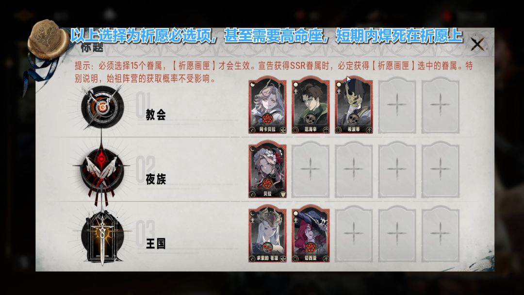 她们的阵营都是夜族,所以我预言后面的心愿单可以选拉米娅和达尔卡罗(笑,到时候除了贝拉随意替换两个给她们就行。
