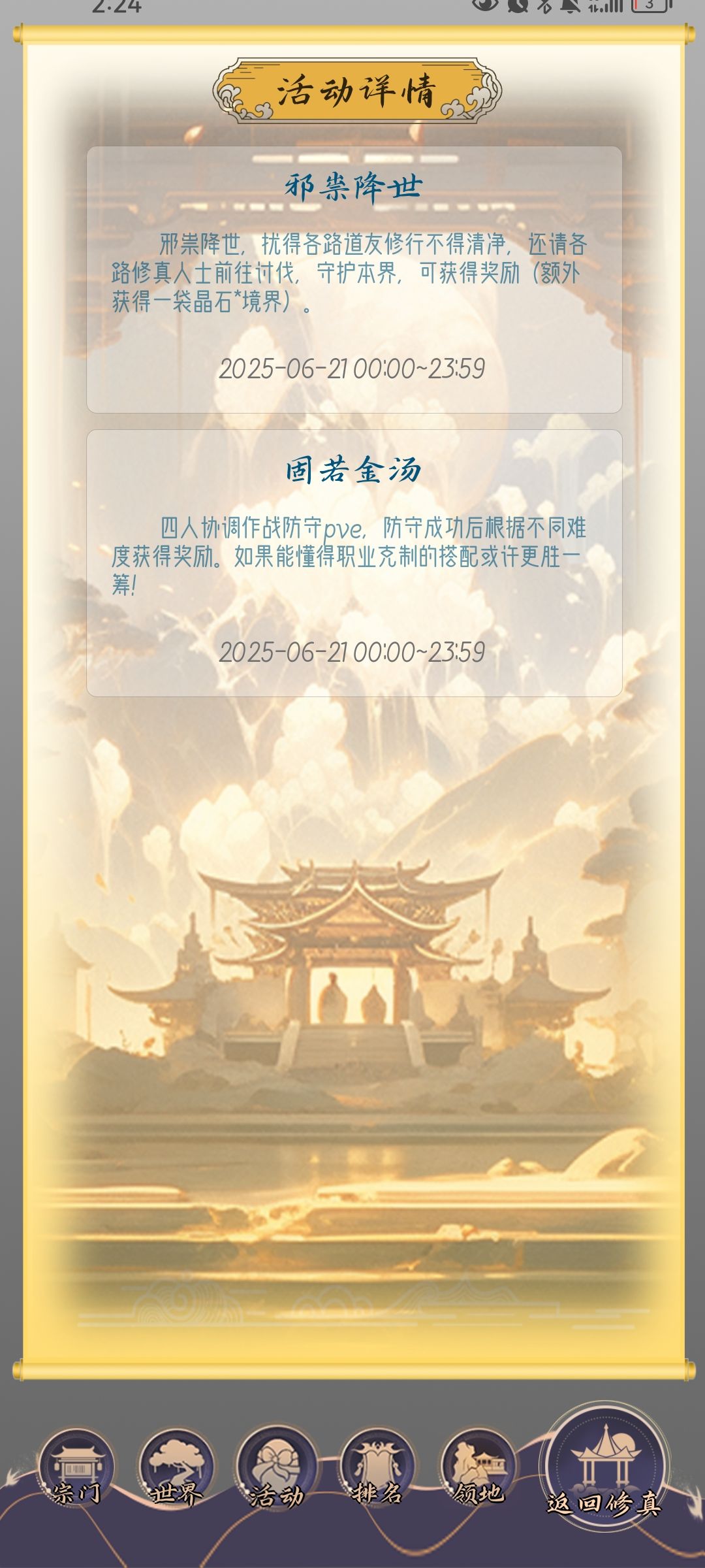 1、签到,点一下完事。(签到给的道心经验点击头像下面等级可以查看是否可以升级)