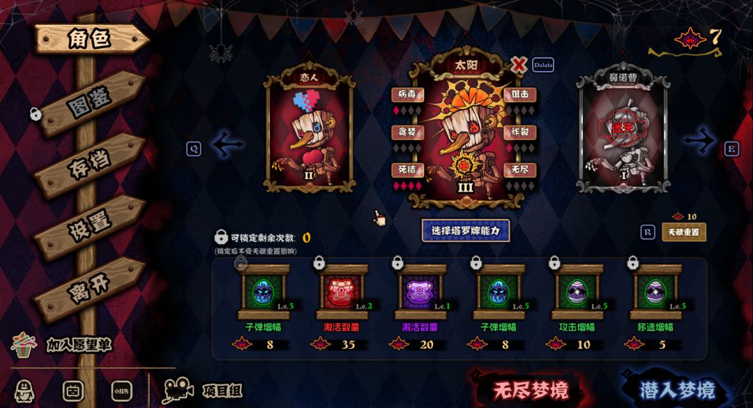 鼻诺曹拥有3类不同的武器,通过特定的排序可以裂变出6种攻击形态,每种攻击形态有不同的攻击特性和专属强化天赋及道具,连携上各种塔罗牌能力以及上百种梦卵能力,想怎么build就怎么build!