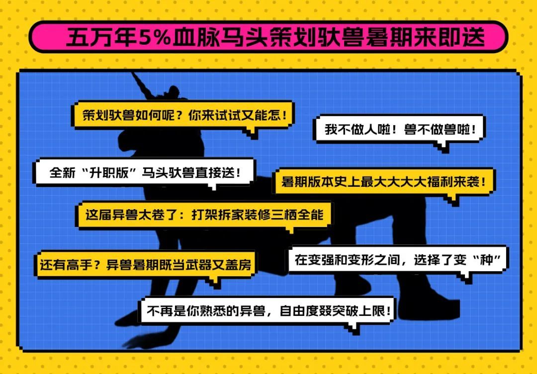 暑期不仅是三万年新版马头元胎直领,还有无限血蛋、元虚丹等史上最多好礼!助你的“马头策划”直接晋升五万年!