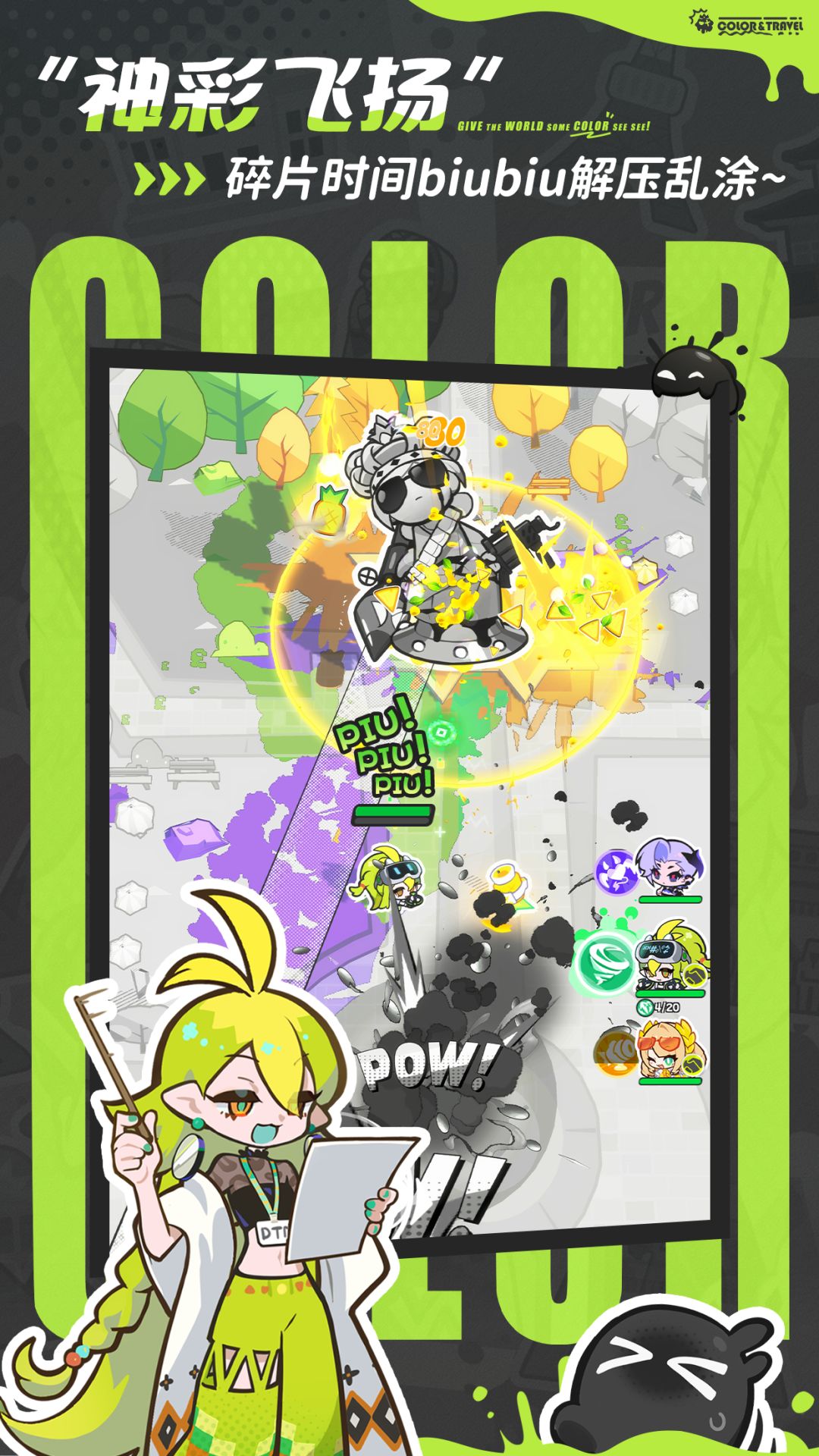 💥手残党狂喜!2分钟就能上手,单手操作也毫无压力,神魔队友自动瞄准,尽情享受颜料biubiu喷射的解压快感!