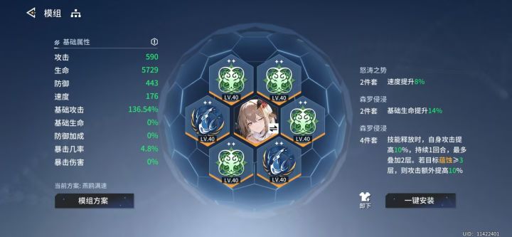 特别说明,模组可以先从四森罗刷起,森罗通用性强,后期星源成型再去刷生命套,森罗用来过渡即可。同时森罗也能提供强力的加攻击,提升队伍输出能力。