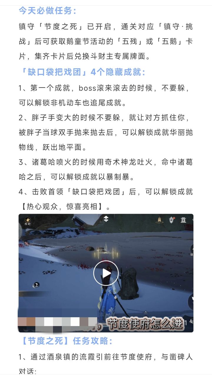燕云十六声节度之死任务攻略,【缺口袋把戏团】4个隐藏成就,节度之死任务攻略,节度之死讲了什么,节度之死解析,节度之死剧情太烂,节度之死怎么开启,节度之死全是BUG,节度之死刺客是谁,节度之死如何恢复,节度使之死,节度使之死剧情,节度使府界碑位置,节度使府怎么进,节度使结局。鹅童节卡牌解锁!野外首领缺口袋把戏团4个隐藏成就,以暴制暴成就,成就以暴制暴,成就华丽抛物线跃出地平面,华丽抛物线跃出地平面成就,非机动车也追尾成就,成就非机动车也追尾,成就热心观众惊喜亮相,热心观众惊喜亮相成就
