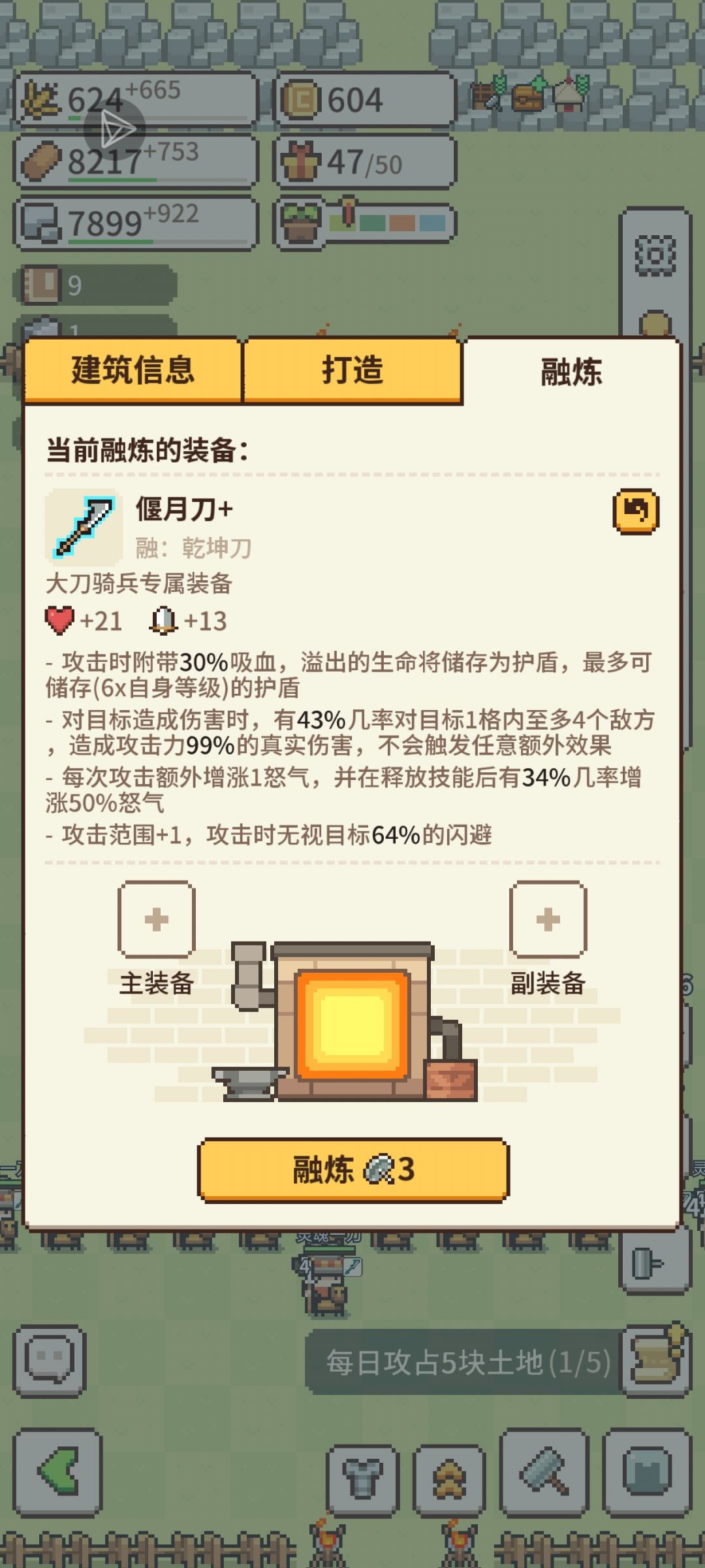 打架骑兵顾名思义就是专职打架,不需要去挖地。所以专如上:锁吸血 找距离+1 双斧融乾坤刀