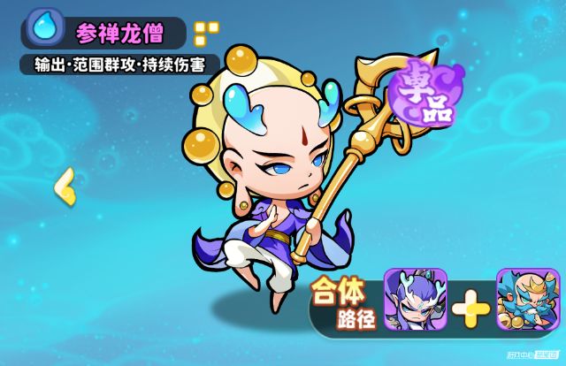 由小白龙、沙和尚两个角色进行合成,也是队伍的主要功能性角色,不仅能够继承小白龙、沙和尚两个角色的所有技能,还能解锁3个全新技能。漩涡:攻击命中敌人时有概率生成漩涡,对踏入的敌人持续造成范围伤害 。是常规输出手段,靠触发概率在战斗中补充范围伤害,干扰敌方站位与行动。潜能爆发:提升自身攻击,同时强化相邻水系英雄攻击 。是团队辅助核心,能让自身与身边水系队友输出更猛,构建水系小范围增益体系。漩涡强化:延长漩涡持续时间、提高每秒伤害 。强化 “漩涡” 技能,让其输出更持久、伤害更高,进一步提升范围输出与控场能力。参禅龙僧是水系阵容的辅助型输出。自身 “漩涡” 提供范围伤害与控场,“潜能爆发” 为自身和相邻水系队友加攻击,强化团队输出;“漩涡强化” 提升技能伤害与持续时间,让输出、辅助能力更突出。适合站在水系队友身旁,靠技能联动,既补充范围伤害,又给队友增益,是水系阵容里串联输出、辅助团队的关键角色,主打水系体系内的协作增益与范围输出 。二、实战摆法以及注意事项1.沙和尚可以为相邻水系英雄增加攻击力,因此在实战中,一定要记得在中间摆放一个沙和尚,可以在前期有效提升我们水系英雄的输出。