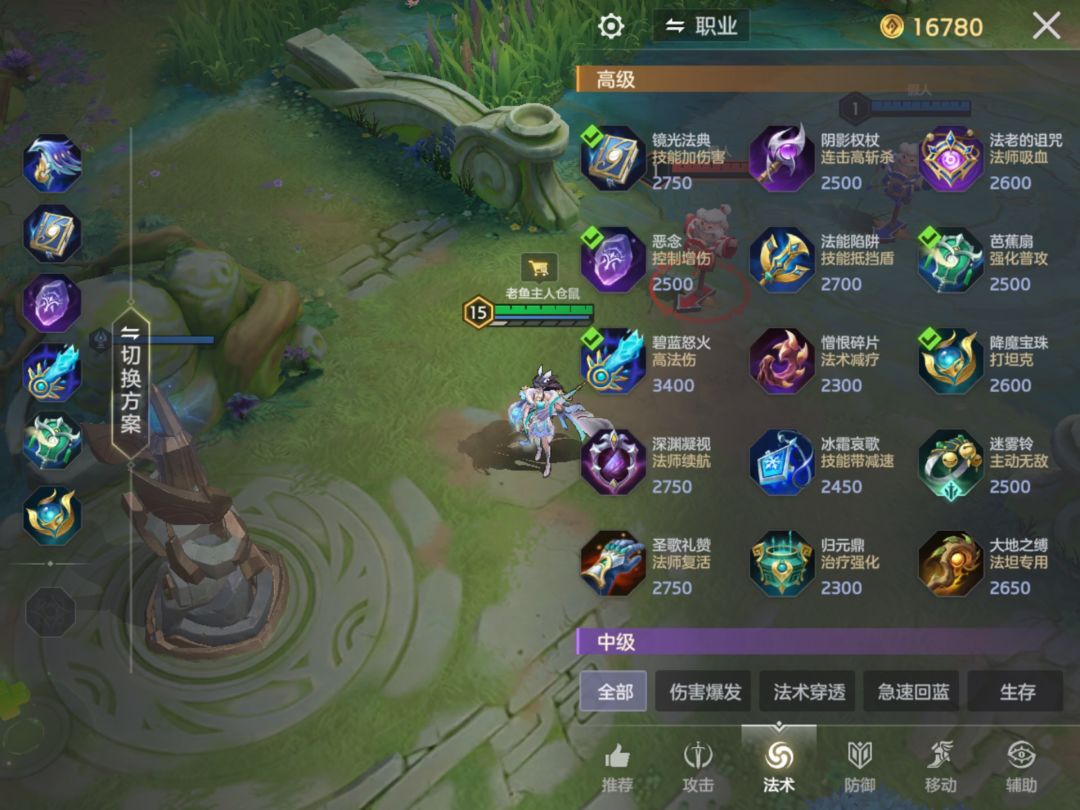 忘川前期技能CD很长,所以第一件冷却鞋是最好的选择,后续补上两件旅者之誓和一小件急速指环,可以在前期拉满忘川的CD,在团战中不断变化形态帮助队友输出控制。后续合成镜光法典,恶念,碧蓝怒火,芭蕉扇,迷雾铃(对方刺客多)或降魔宝珠(对方坦边多)