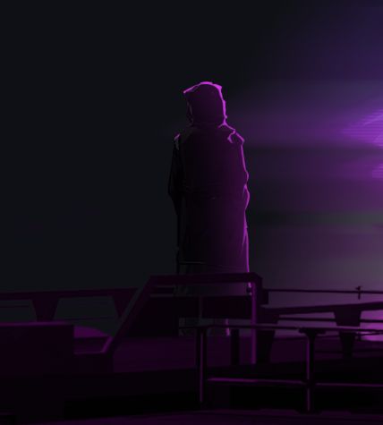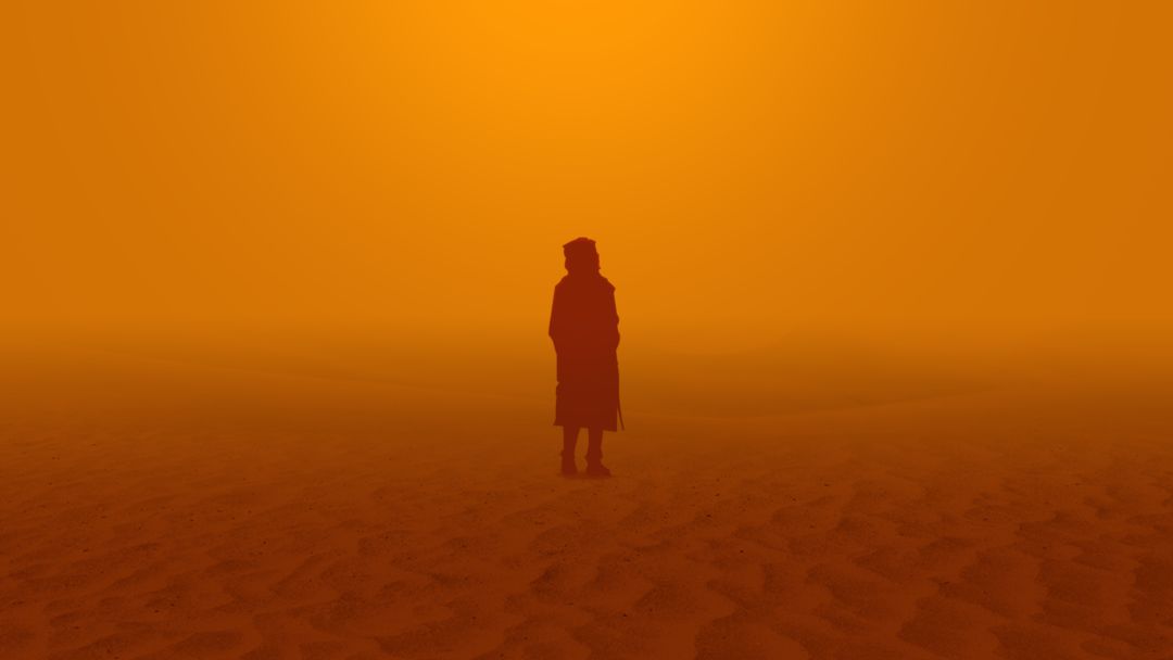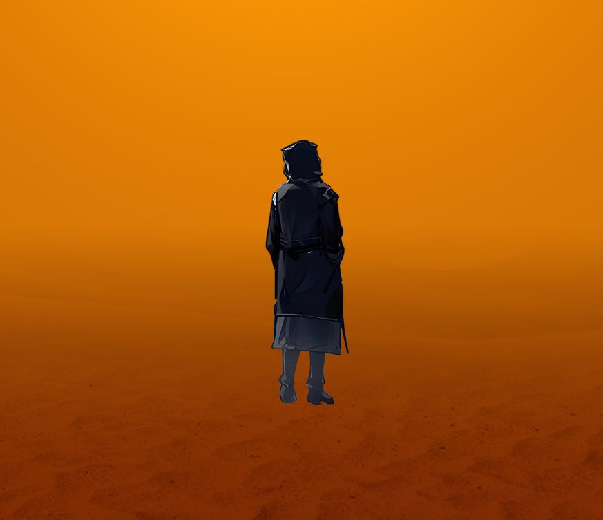 这张的配色很保守,色相基本没有太大变化,但也不能想的太简单,仔细观察可以发现人物并非单一的纯色,而是带着轻微渐变,天空同样,整个场景的光源是来自前上方,然后被打散。