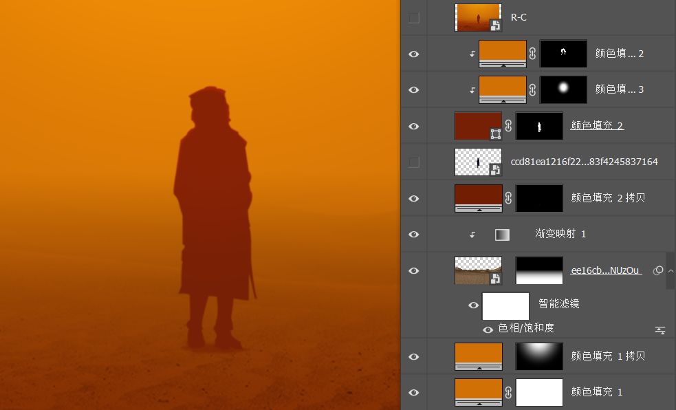 用的是同样的纯色,混合模式颜色减淡,用蒙版控制
