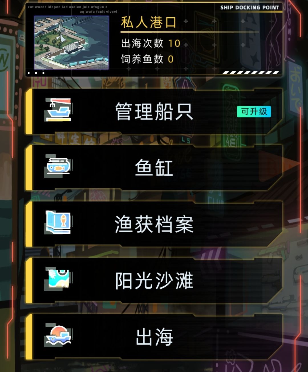 管理船只有一个升级部件的图标,可以给船升级
