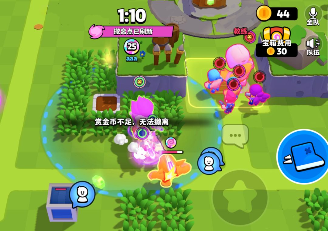 ➢ 撤离需要达到撤离点,在撤离点范围内停止移动,即会自动开启撤离进程,完成撤离后将成功获得带出的赏金币;