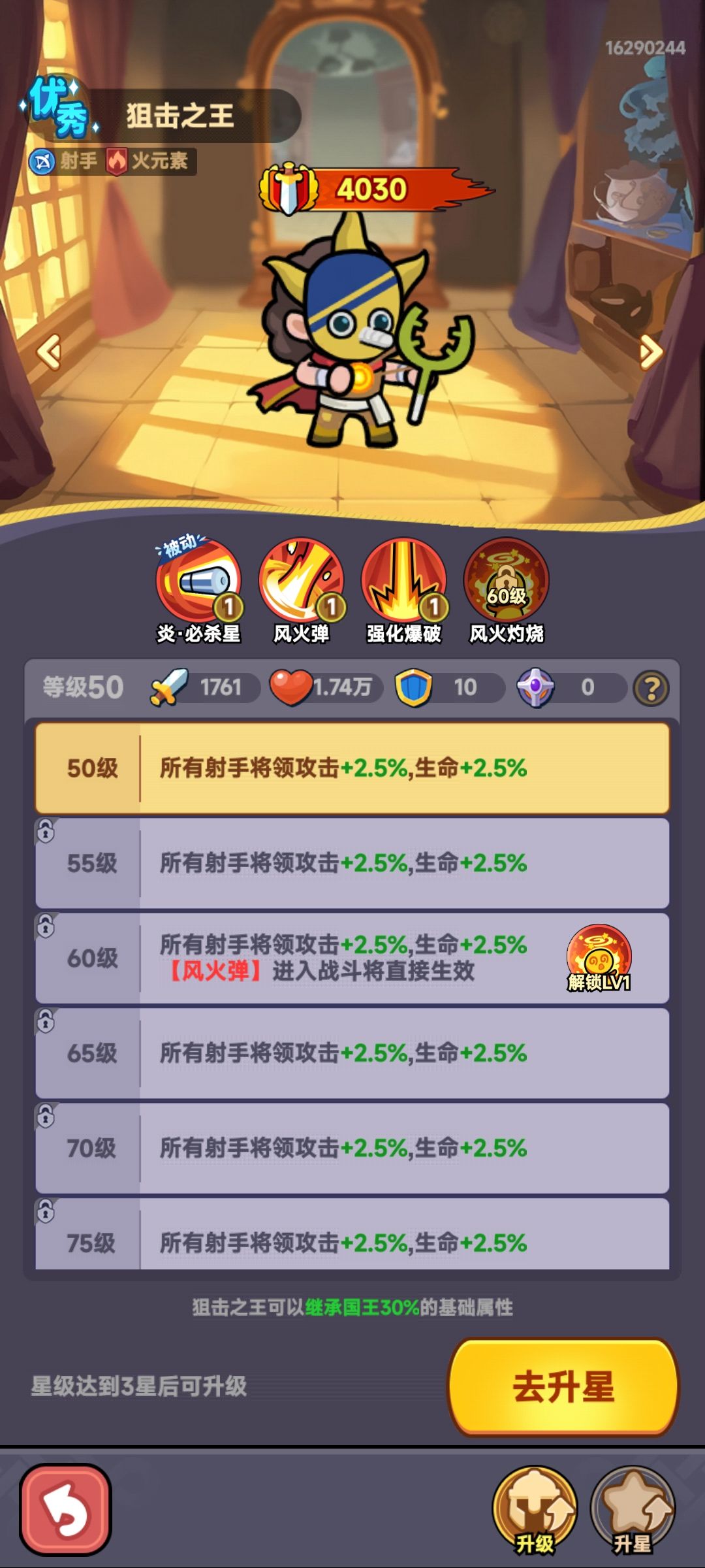 新手跟中期射手英雄是用于过度跟针对性使用的,等级均在40级上下就可以了,有些甚至30级够足够应用了,当然你要是每天上线打日常,收菜到升级的资源根本耗不完,那也可以升升,只是说升星石到了后面很难获得大量的,所以升星方面要省的用。