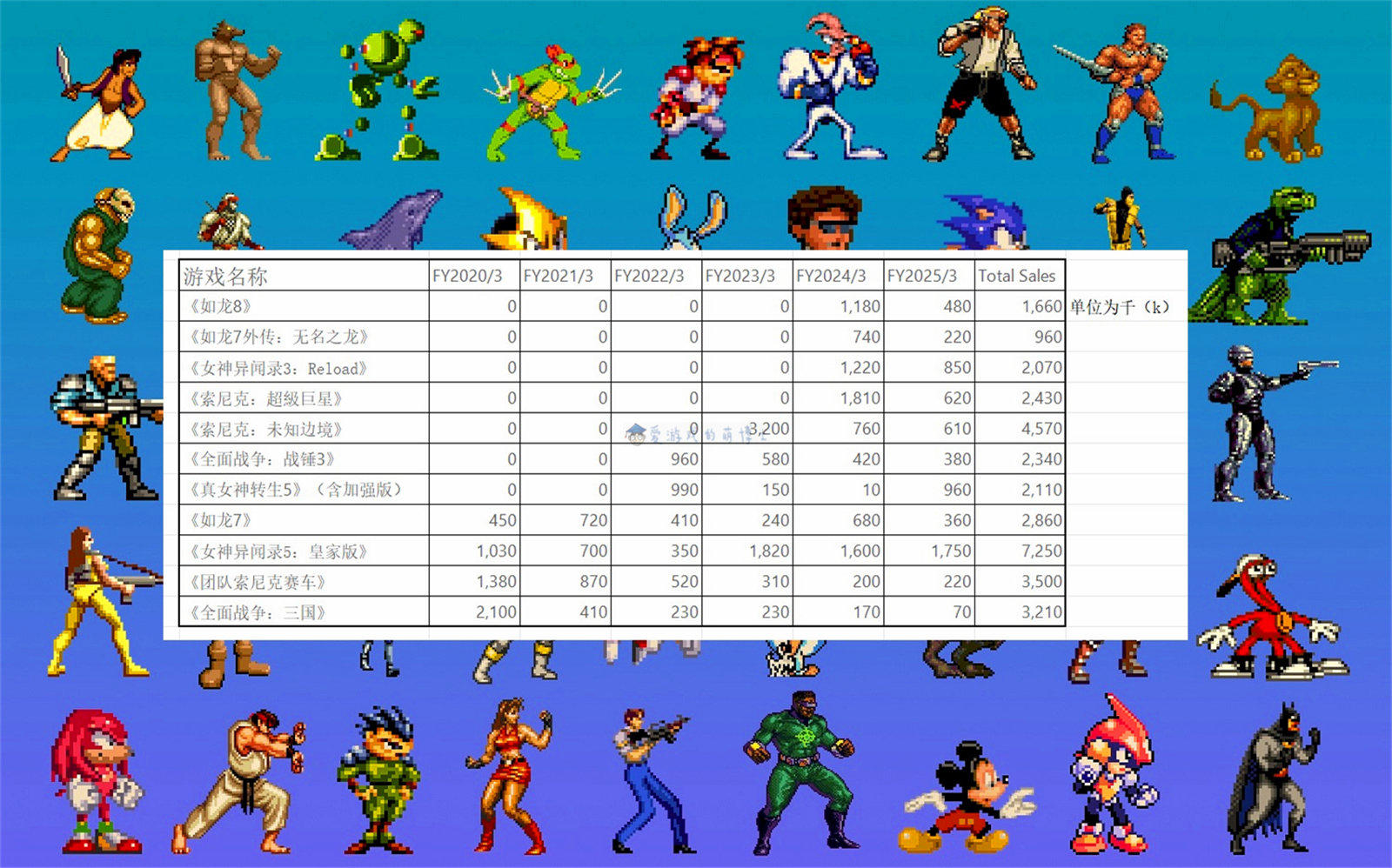 值得一提的是:《全面战争:三国》《团队索尼克赛车》《如龙8》《女神异闻录3:Reload》等作品在刚推出时也表现亮眼,迅速突破百万销量。其中,《全面战争:三国》首年销量更是超过200万套,将三国历史与策略战争玩法巧妙融合,为策略游戏爱好者打开新世界大门;《如龙8》凭借精彩剧情、丰富角色塑造以及系列积累的良好口碑,发售后一周内全球销量便突破100万套,创下系列销售速度最快纪录。