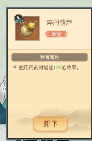 没错,这个春季活动的装备可以增加丹药的效果,就如上面提到的战意丹,携带葫芦之后施加战意就会变成11点。(10*1.15向下取整)