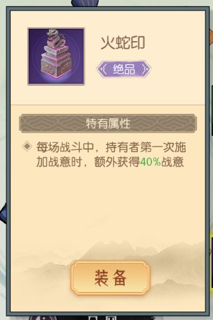火蛇印的加成只能加成每场战斗中第一次施加的战意,而战鼓炽晶臂描述中的获得,并不属于施加。只有吃战意丹的行为属于施加。所以火蛇印同样只能我们主角携带。而怒战熔岩剑的额外战意同样属于施加,所以他也算施加战意。