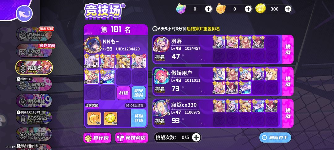 3.竞技场:竞技场分为两部分,防守编队和挑战