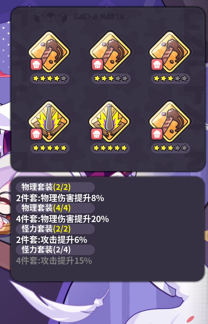 2.物理套装:出现在甜品区/异界区,两件/四件 物理伤害提升8%/20%