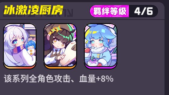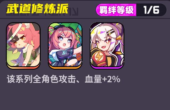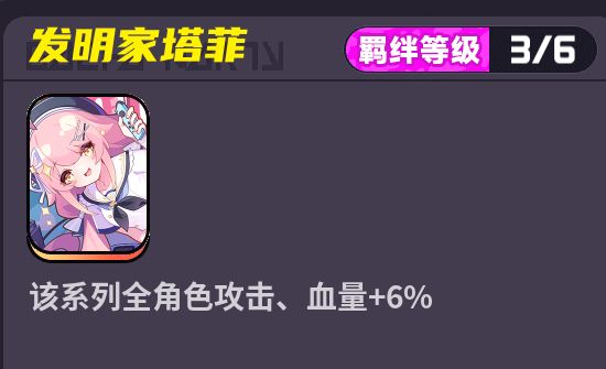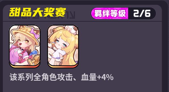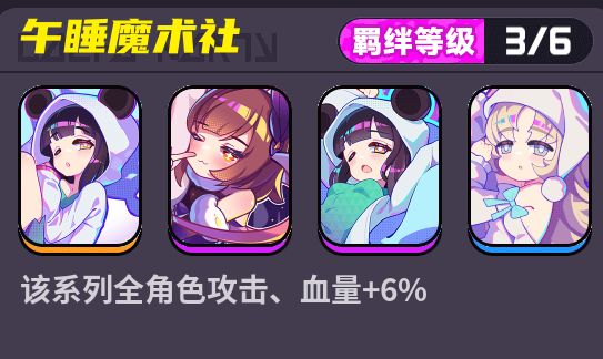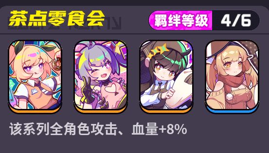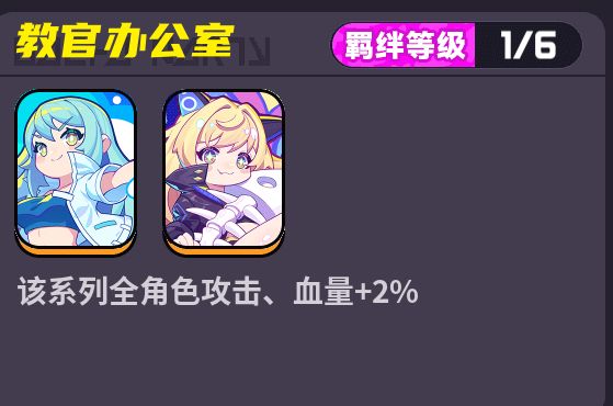 羁绊效果都相同,全0/1/2/3/4/5星分别对应2%/4%/6%/8%/10%/12%攻击与血量加成(仅对羁绊内包含的角色生效)