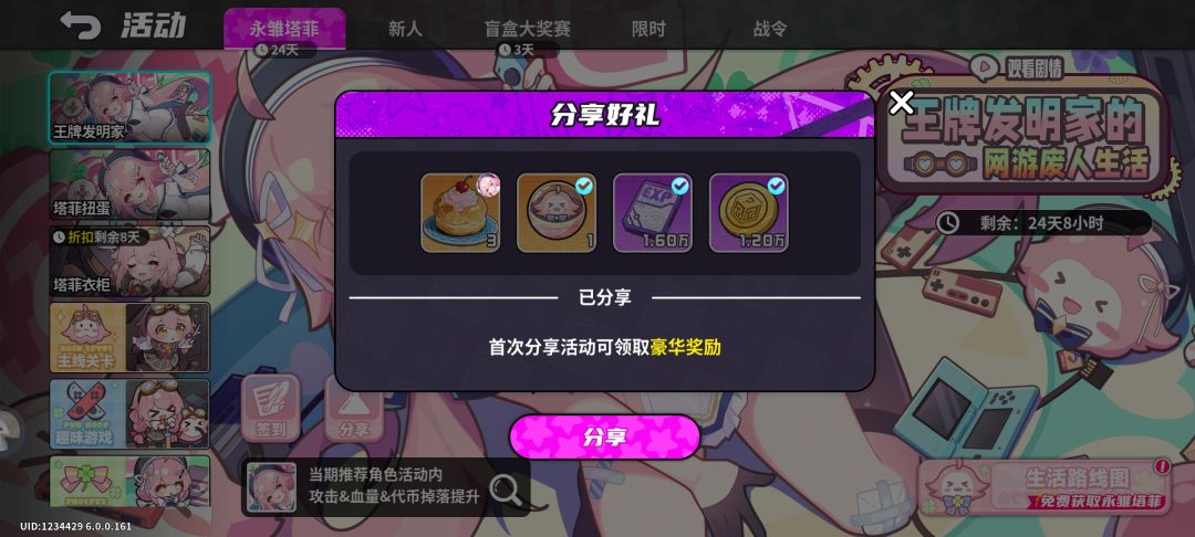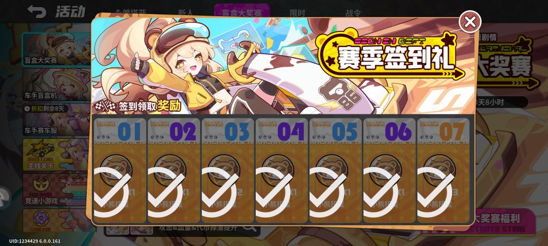 3.活动签到:限定的签到活动,共7天签到,签到奖励各不同