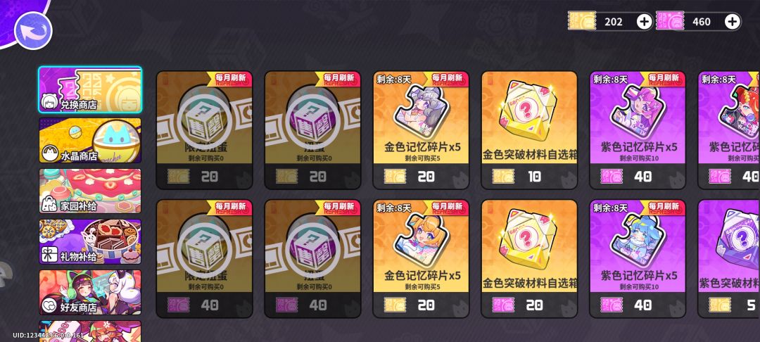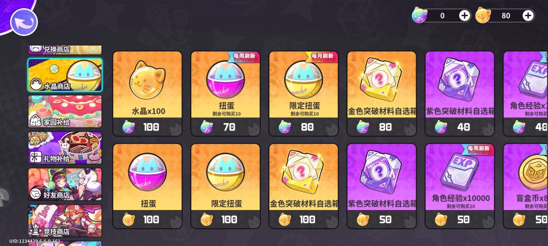6.竞技商店:可兑换普通扭蛋、金色徽章、角色经验、盲盒币,普通扭蛋必换,其余看情况兑换