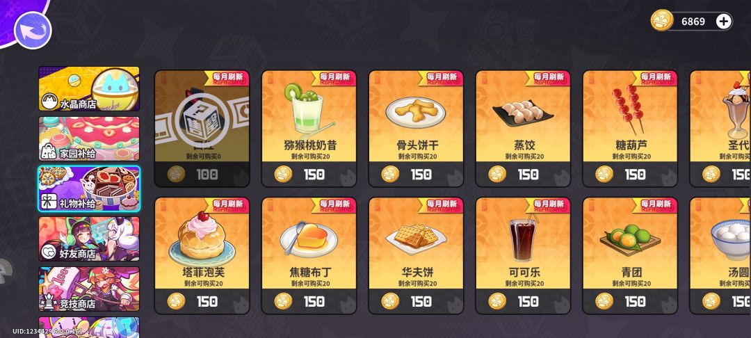 4.礼物补给:可兑换送给角色的好感度礼物(基本都是角色专属礼物)看情况兑换