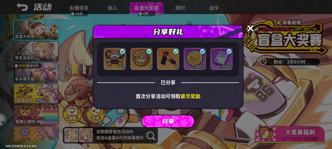 金币本:关卡1/2/3/4/5/6/7/8/9/10分别给1.6/1.7/1.8/1.9/2.0/2.1/2.2/2.3/2.4/2.5万盲盒币,首通奖励与其相同