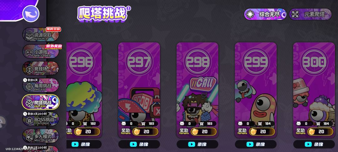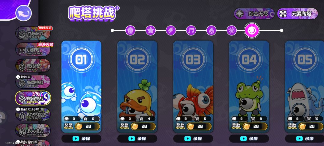 5.爬塔挑战:分为综合无尽和元素爬塔