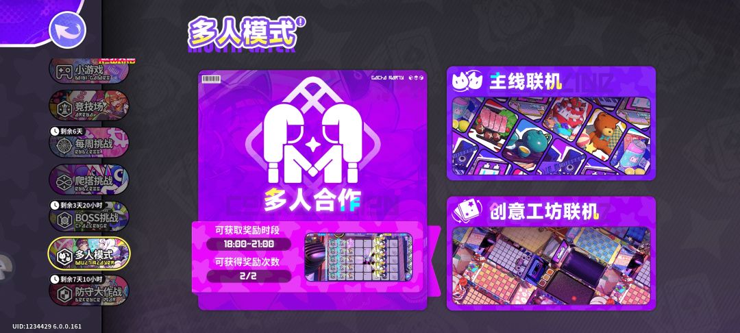 7.多人合作:一周刷新一次主题,每天有两次奖励获取机会,奖励获取时段为18-21点(晚上6点到9点)