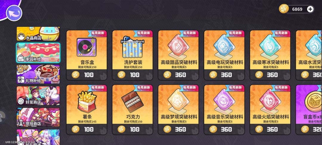 3.家园补给:可兑换家园内角色会用到的物品、突破材料、盲盒币、角色经验,看情况兑换
