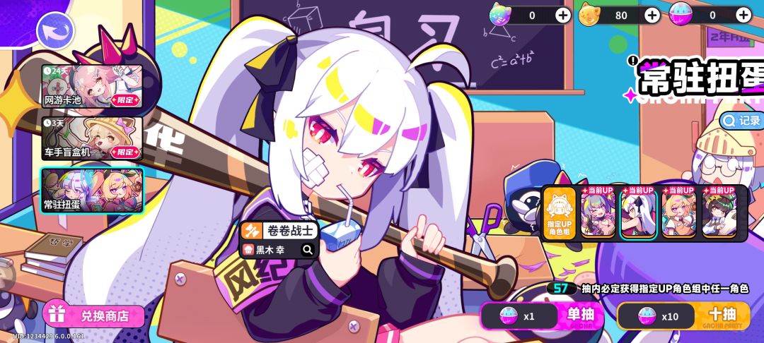 1.兑换商店:扭蛋可获得金色和紫色兑换券,可以兑换角色碎片、普通扭蛋、限定扭蛋、盲盒币、角色经验和突破材料自选箱,扭蛋必换其他看情况