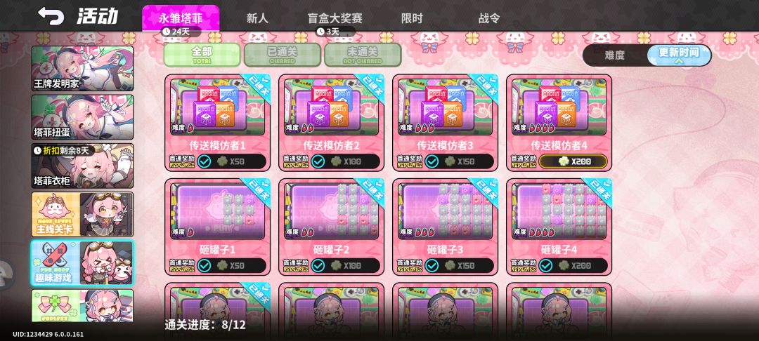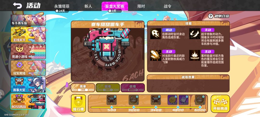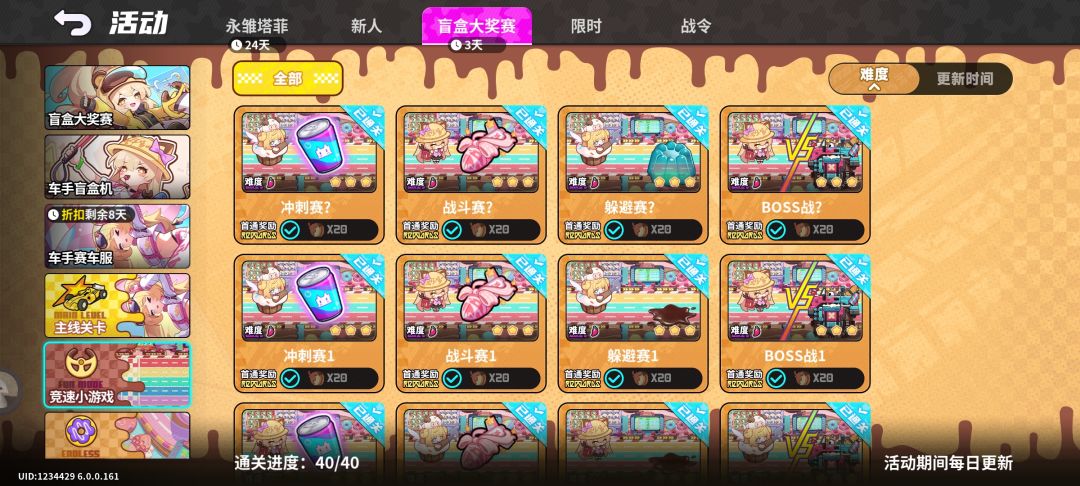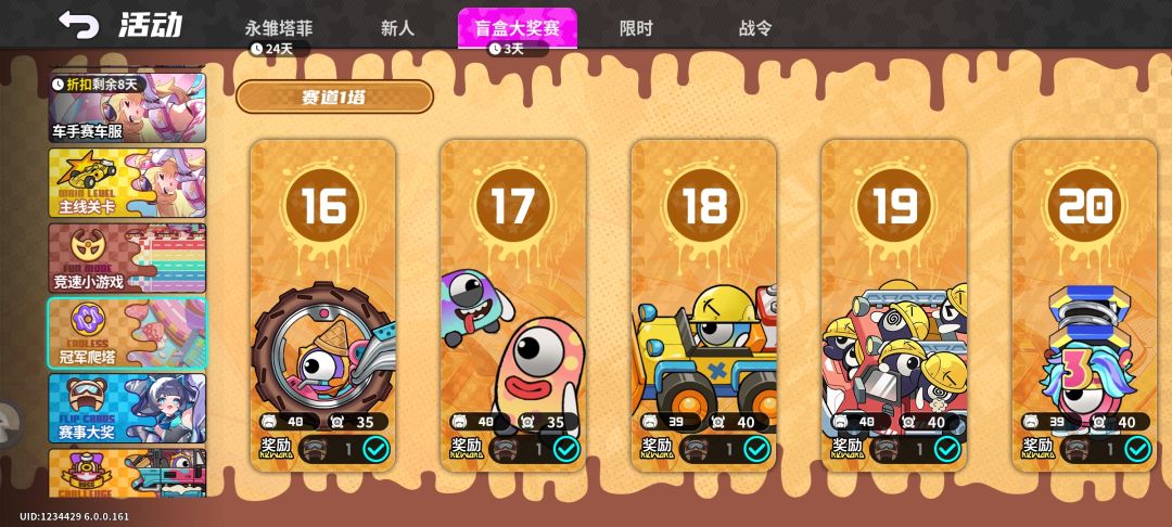 盲盒大奖赛:共四类关卡,可领4×900=3600事件点