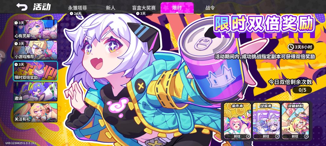 11.限时双倍奖励:资源本奖励翻倍,每日双倍次数为5次