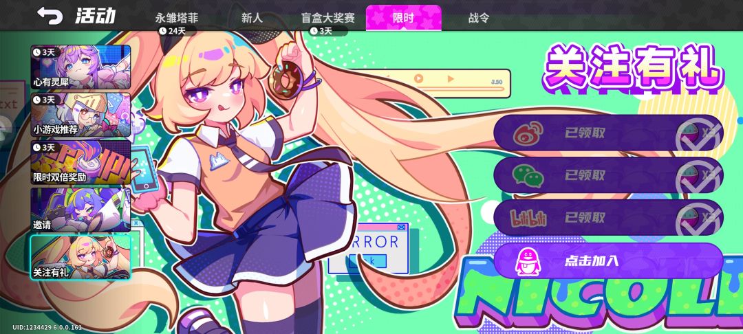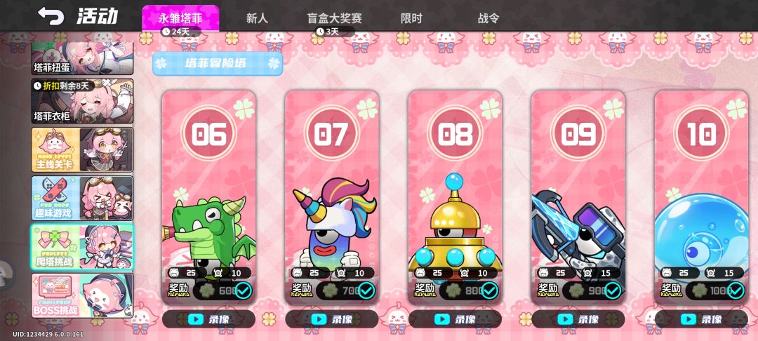 6.活动爬塔:每个限定的爬塔活动层数各不同,奖励也不同