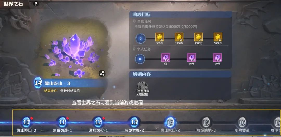 这三个阶段会随着世界之石进度逐渐开放。与此同时,每个世界之石小阶段还会有各种玩法和功能解锁,每阶段的游戏机制均有所不同,充满策略与乐趣。