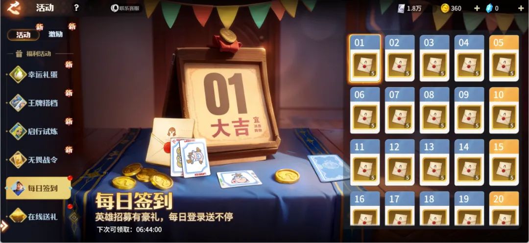 天天送5抽,终生不间断!制作人承诺,每日上线就是5抽!完成每日签到即可领取,动动小手,英雄到手~