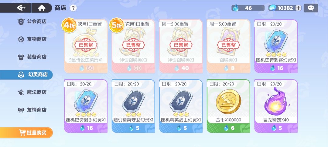 幻灵商店:金史莱姆必拿(相当于一个幻灵本体非常珍贵)拿完金史莱姆再买神话召唤卷其他不买