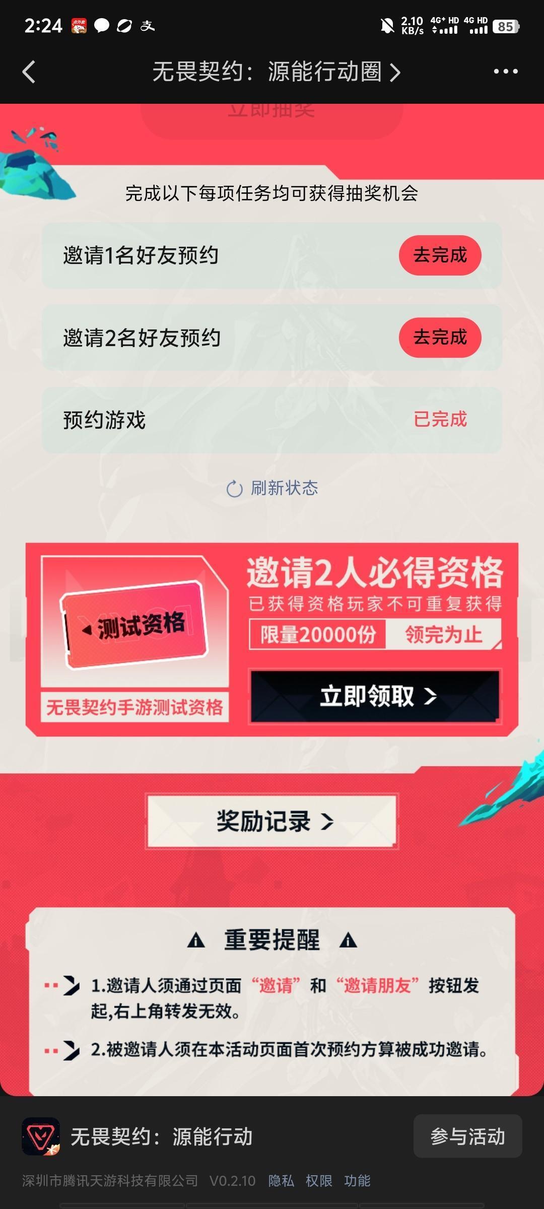 参与方式:在无畏契约手游游戏圈打开(福利页面)找到邀请好友活动(遵循先到先得限量2万份)