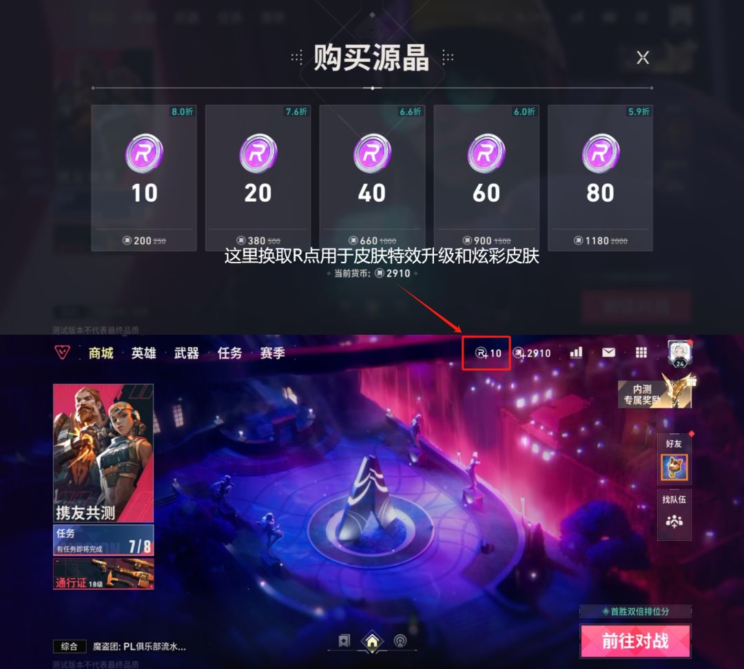 1-1--游戏专属R点可以对部分皮肤升级特效和炫彩的,通过测试币换取