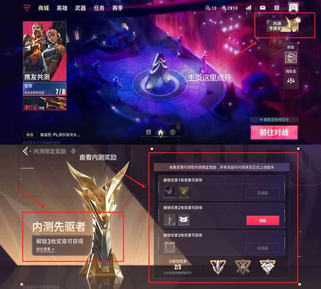 1-2--保留奖励在游戏大厅的右上方的内测专属奖励查看。