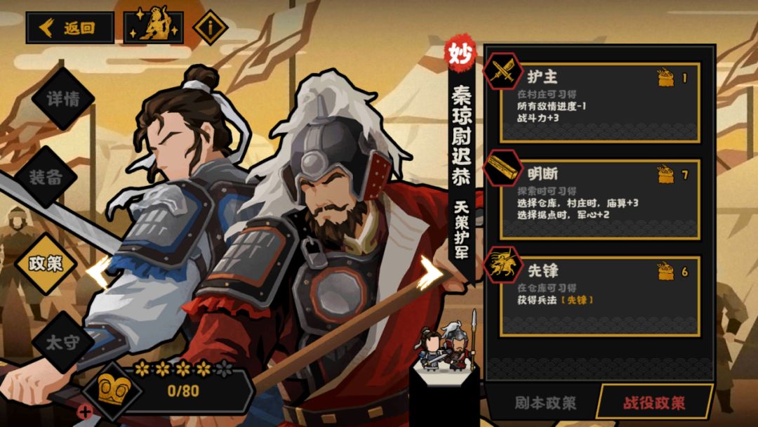 护主的正常战斗期望是40到110点,考虑到对应的金钱消耗,单纯从战斗力角度来说,勉强算是一个合格的名臣政策。
