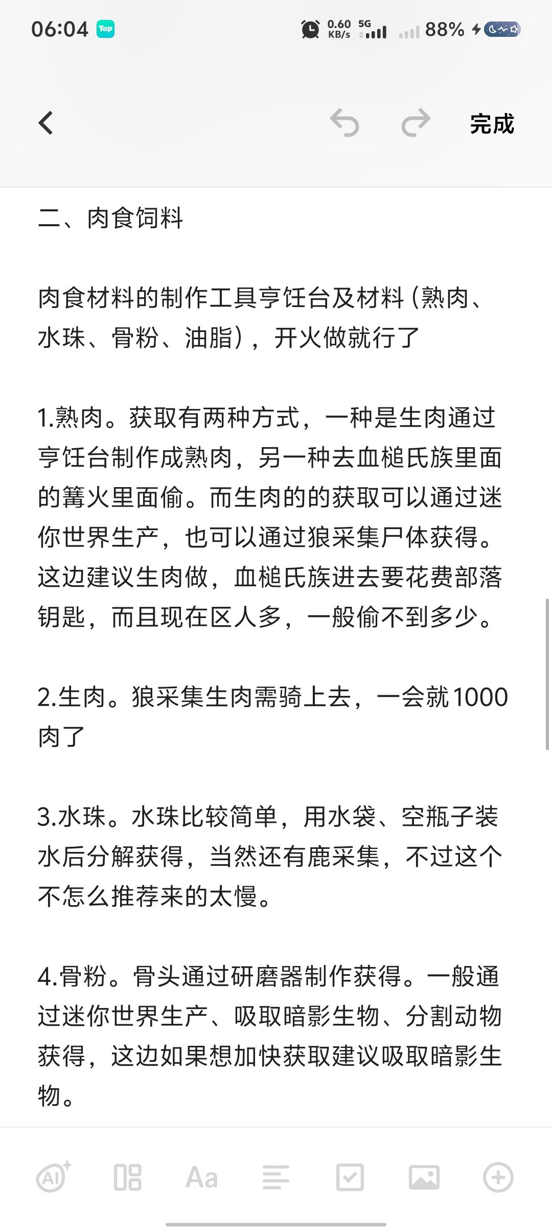 以上都是基础饲料的制作方法和材料收集,无论你是做普通驯养还是进阶完美,都用的到他,细细品尝,会让你节省不少时间