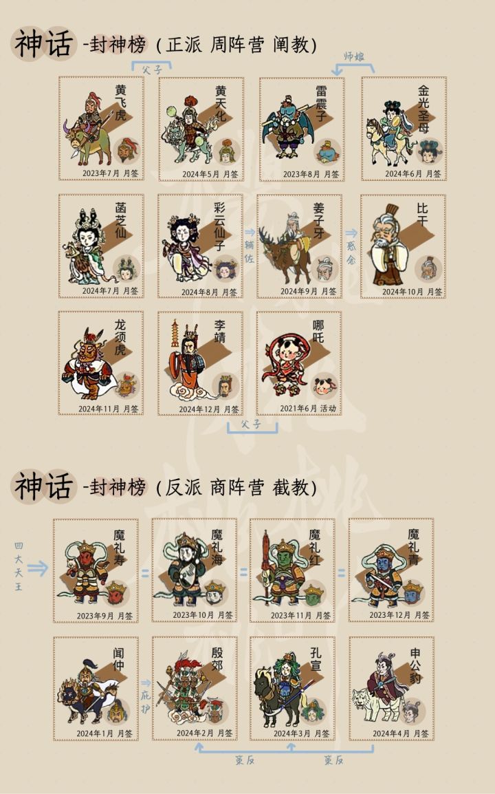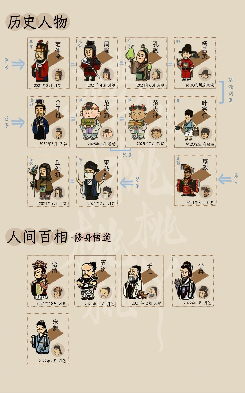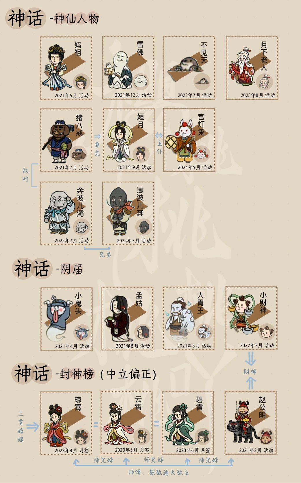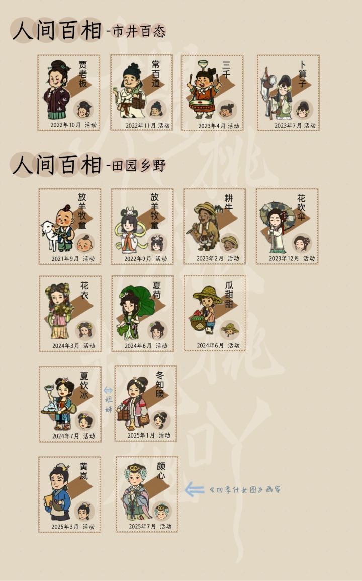 已更新至新的闲人:7-12月四季仕女、颜心、范大撤、范大冲、奔波儿灞、灞波儿奔 图片及资料参考游戏本体和官方内容 具体分类如下: